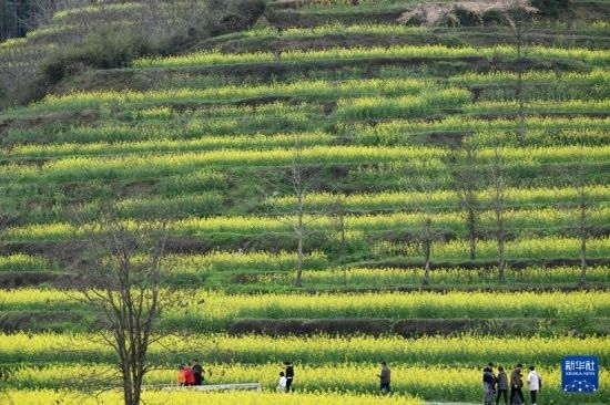 眼下,安徽省黃山市徽州區(qū)呈坎鎮(zhèn)靈山村的梯田油菜迎來(lái)盛花期,層層疊疊的梯田上綻放的油菜花猶如金色波浪,吸引各地游客前來(lái)賞花踏青。