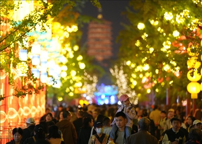 今年中秋假期,“京彩燈會(huì)”吸引了超過12萬名游客。國慶假期前4天,游客量達(dá)7萬余人。除了大飽眼福,燈會(huì)還設(shè)立150余家特色商鋪,覆蓋老字號(hào)、非遺、文創(chuàng)、餐飲美食等,豐富游客體驗(yàn)。多家知名餐飲企業(yè)在燈會(huì)擺攤設(shè)點(diǎn)為游客服務(wù),賞燈之余還能享受大廚現(xiàn)做的星級(jí)美食。