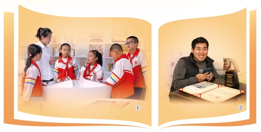 圖①:小學(xué)生在西吉文學(xué)館研學(xué)參觀。