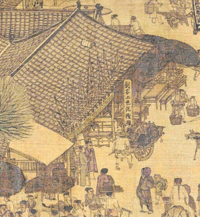 以“汴京富麗天下無”來概括北宋東京的繁榮與富庶,并不過分?!稏|京夢華錄》曾記載,在東京城的酒店中二人對坐飲酒,就需要“注碗一副、盤盞兩副、果菜碟各五片、水菜碗三五只”。而東京城中,匯聚了百工精巧,無所不有。這些在大相國寺中有集中的體現(xiàn)。大相國寺是東京城內(nèi)著名的佛教大寺,又是東京城內(nèi)“萬姓交易”的場所,每月開放8次,各種日常用品、金銀首飾以至書籍碑帖、文房筆墨,都可以在寺中購得。李清照在《金石錄·后序》中曾回憶北宋末年她和趙明誠從大相國寺購買碑文后,回到家中展玩對讀??梢姡源笙鄧聻橹行男纬闪艘粋€繁華的商業(yè)區(qū),成為官民士庶出入頻繁的活動中心,拜佛上香、觀光娛樂、廟會集市、時令游賞,無所不有。