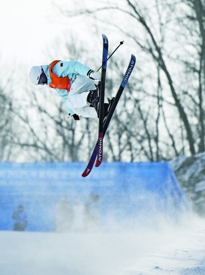 2月8日,李方慧在自由式滑雪女子U型場地技巧決賽比賽中。新華社記者 夏一方攝
