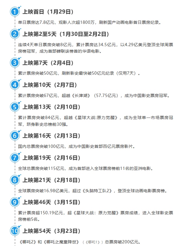 從春節(jié)檔票房冠軍到中國(guó)影史票房冠軍,從登頂全球動(dòng)畫電影票房榜,到超越眾多影史大片沖進(jìn)全球總榜前5,《哪吒2》不僅被中國(guó)觀眾一刷再刷,更將“給我破”的氣勢(shì)蔓延至世界各地,打破“復(fù)聯(lián)”“星戰(zhàn)”等國(guó)外IP的壟斷,實(shí)現(xiàn)從中國(guó)文化積淀到中國(guó)IP樹立的升級(jí)。