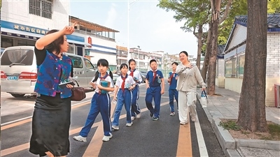 郭璐(左)和深圳市鹽田區(qū)鹽港小學(xué)的師生們一起,走出課堂,開展“尋秘疍家”主題活動(dòng)。