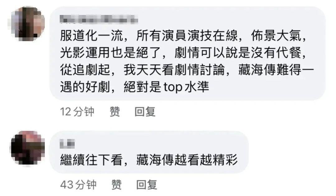 “畫(huà)面、場(chǎng)景、演技、情節(jié),各方面都近乎完美,相當(dāng)優(yōu)良的制作”,“服化道一流,演員演技在線,布景大氣”,“感受到了老祖宗的審美”,“連看兩遍,因?yàn)楹芏嗉?xì)節(jié)值得細(xì)品”……一些臺(tái)灣觀眾在“看臺(tái)?!焙M馄脚_(tái)留言大贊劇集,足見(jiàn)這部叫好叫座的總臺(tái)大劇深深吸引了臺(tái)灣觀眾。