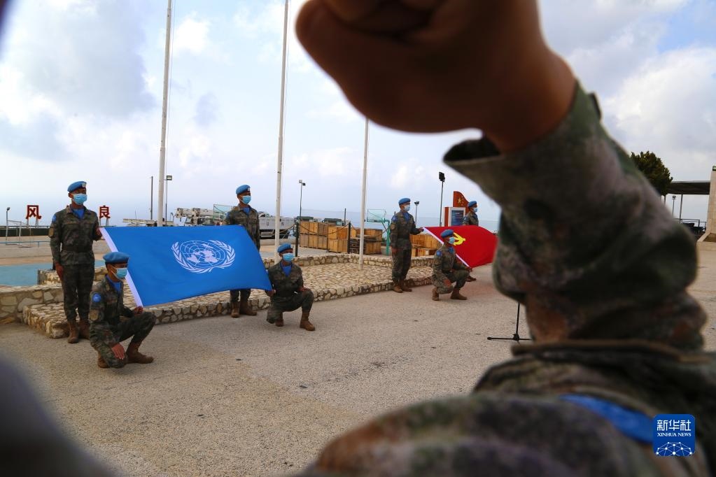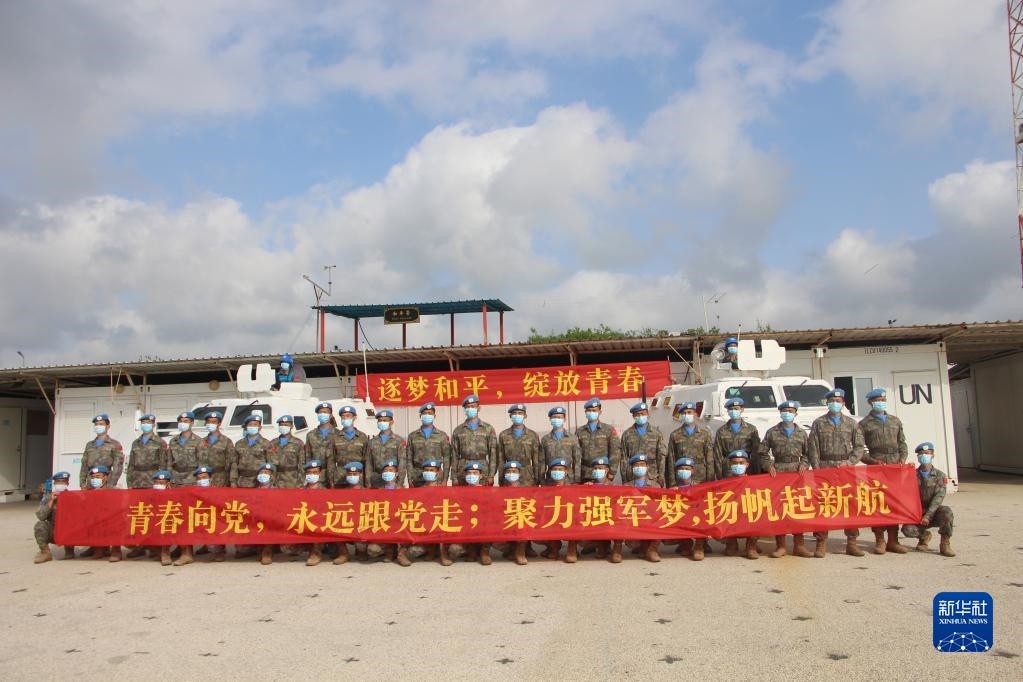 “我宣誓:忠于黨,忠于社會(huì)主義,忠于祖國(guó),忠于人民……揚(yáng)藍(lán)盔精神,展大國(guó)形象,為祖國(guó)爭(zhēng)光,為軍旗添彩。”中國(guó)共產(chǎn)主義青年團(tuán)成立100周年之際,在黎巴嫩南部提爾市沙馬村的中國(guó)維和營(yíng)區(qū),中國(guó)第20批赴黎巴嫩維和建筑工兵分隊(duì)的官兵們頭戴貝雷帽,身穿配有五星紅旗臂章的星空迷彩服,擺成數(shù)字“100”的隊(duì)形,面向國(guó)旗和聯(lián)合國(guó)旗莊嚴(yán)宣誓。