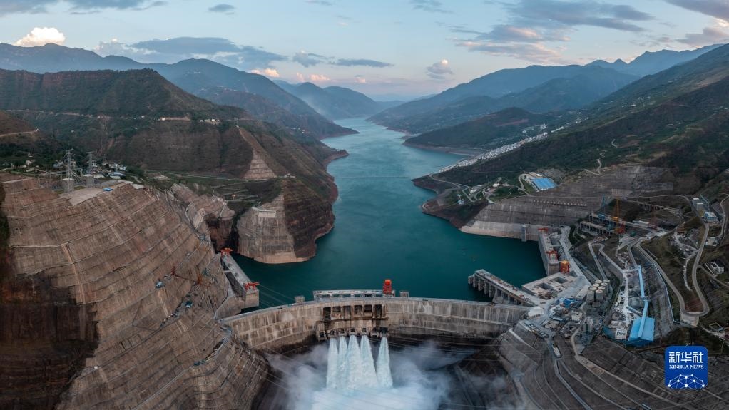 這是白鶴灘水電站(無人機(jī)全景拼接照片,5月30日攝)。新華社記者 胡超 攝