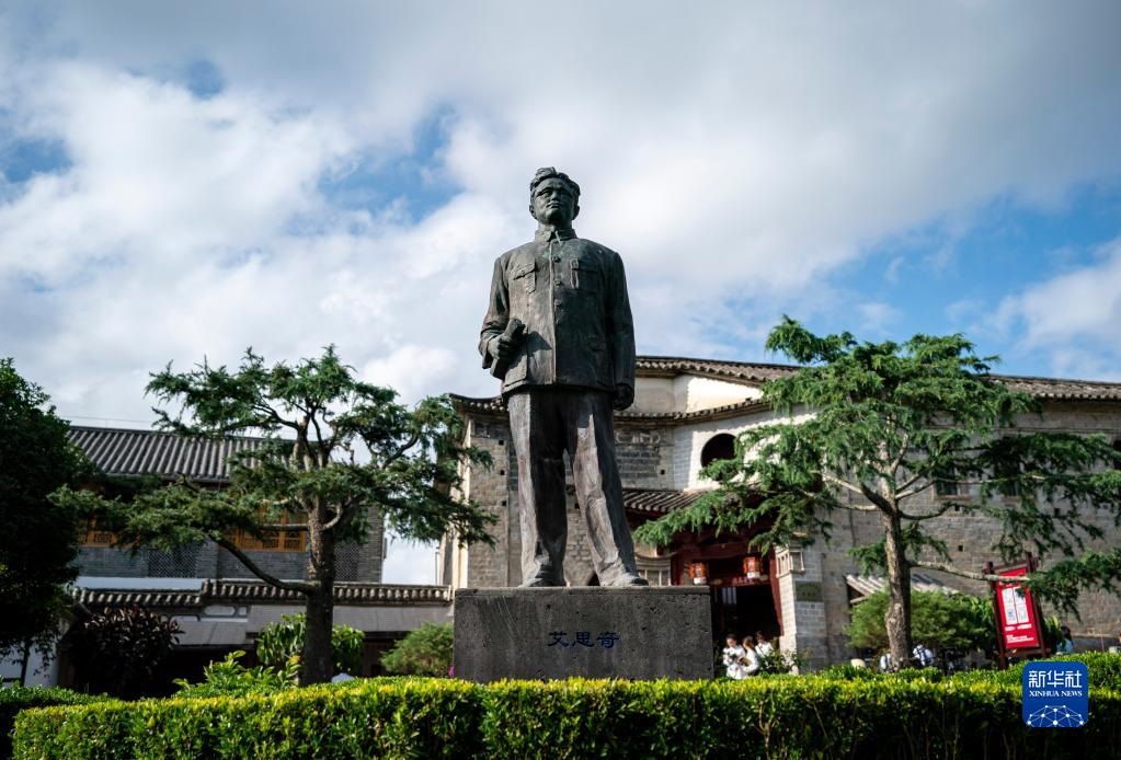 這是云南省騰沖市和順古鎮(zhèn)艾思奇紀(jì)念館內(nèi)的艾思奇塑像(5月27日攝)。新華社記者 陳欣波 攝